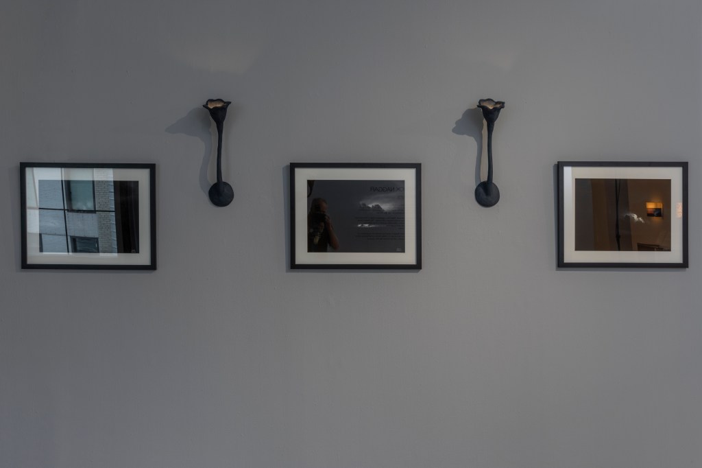 The 9 pieces of this exhibition are the Floral Sconce II, the Ring Console, the Aphrodite table lamp, the Sky mirrored sculpture, the Celestial coffee table, the Aphrodite Chandelier, the Celestial bench, the Valentine sconces and the Sea mirrored sculpture.